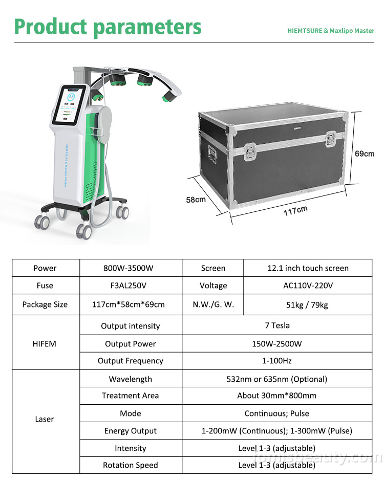 | HIFEM Output | 150W-2500W, 1-100HZ |