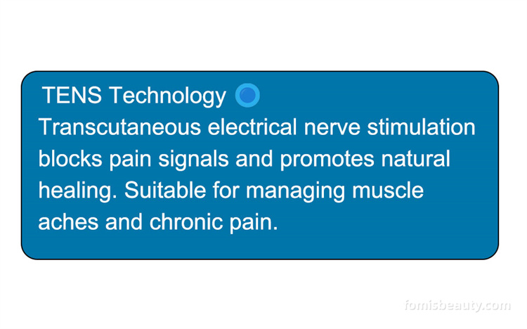 (TENS) is used to temporarily relieve muscle soreness in the shoulders, waist, back, neck, upper limbs (arms), and lower limbs caused by muscle tension resulting from exercise or daily household activities.
