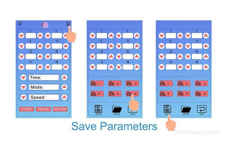 This instrument comes equipped with 8 pairs of reusable silicone sheets, supporting quick setup and storage of 6 sets of parameters for instant recall.