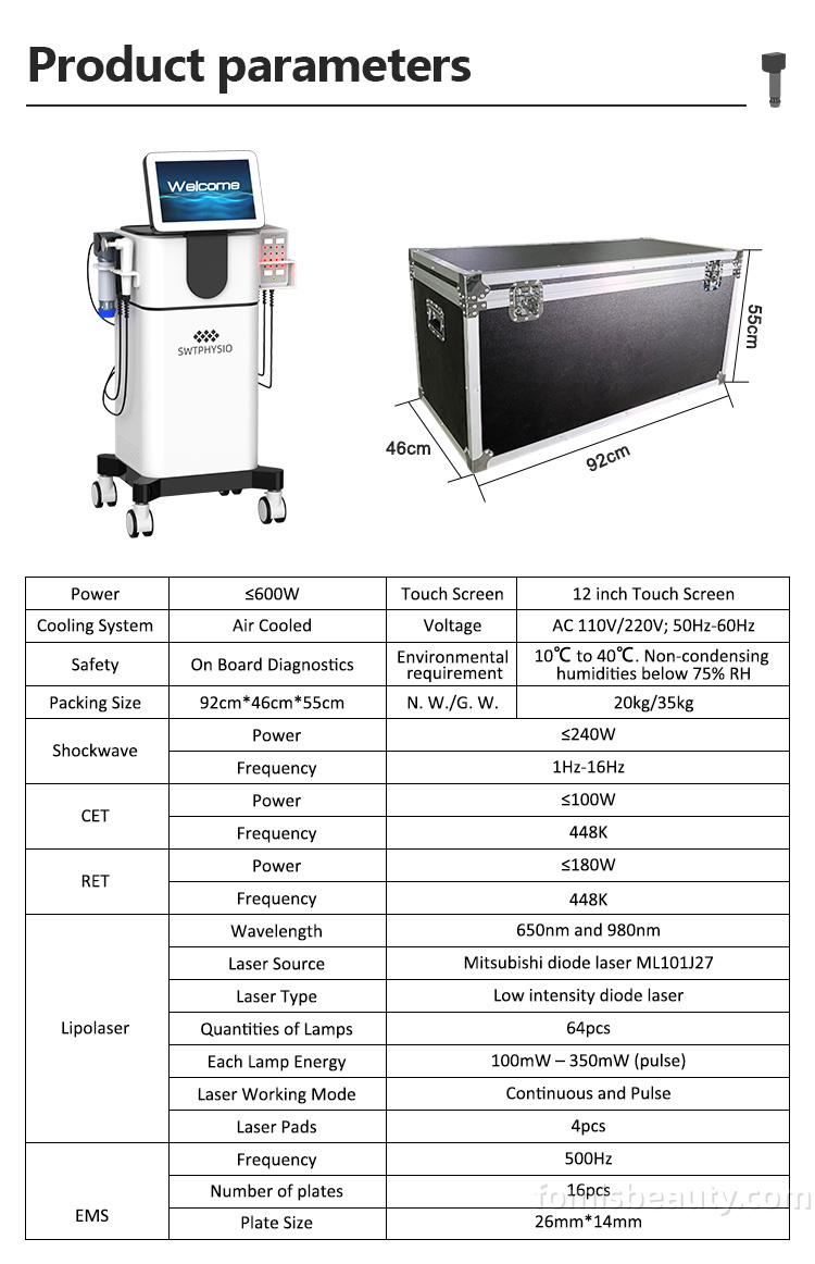 Application of shockwave ems laser lipolysis 448k cet ret machine: