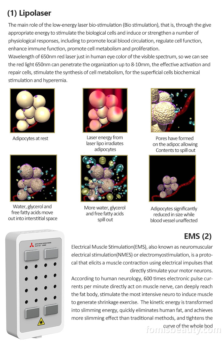 Application of shockwave ems laser lipolysis 448k cet ret machine: