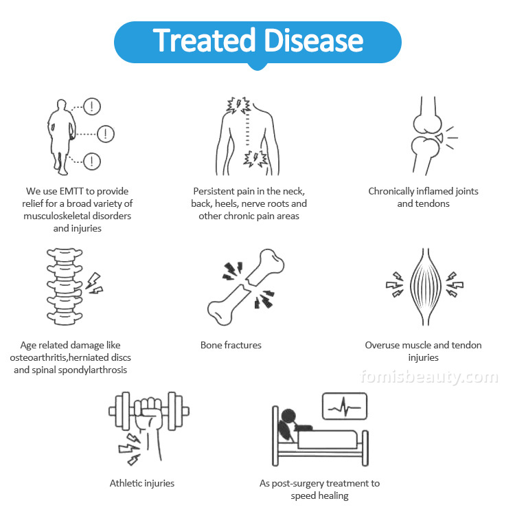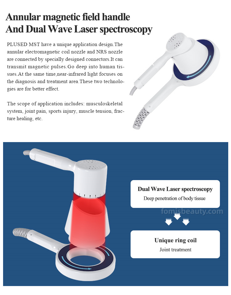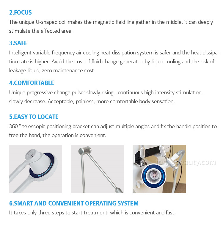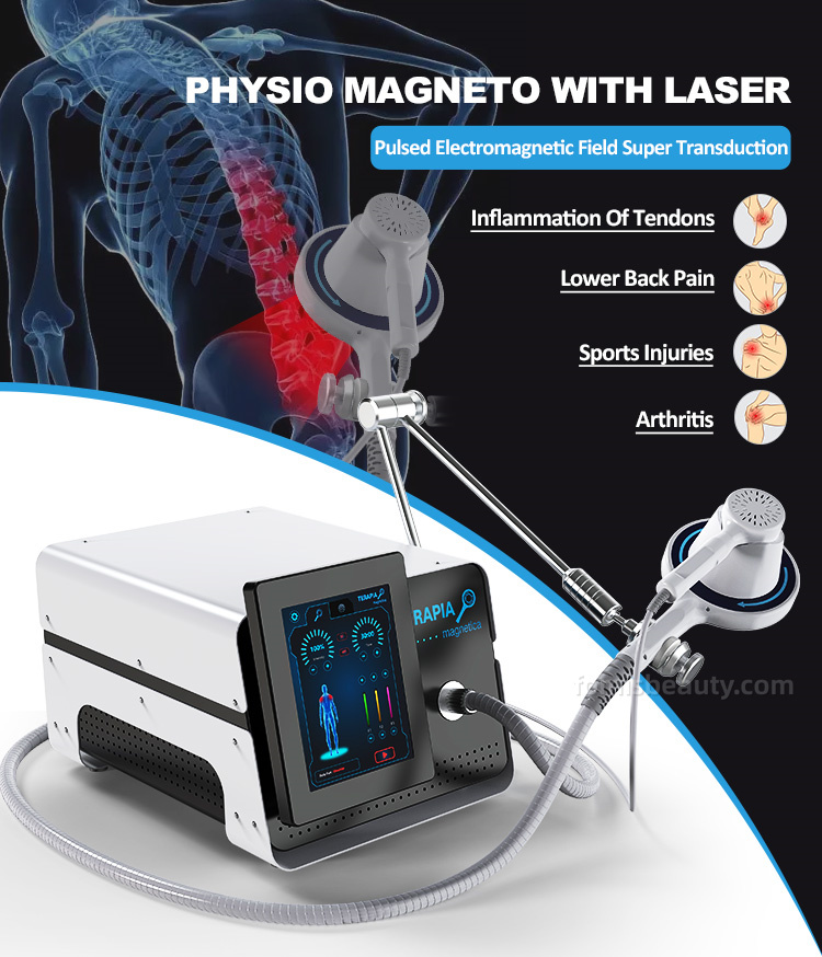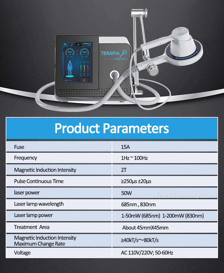 According to the principle of Faraday electromagnetic induction, a large amount of energy is quickly discharged from large-capacity storage capacitors to the coil. The coil is stimulated by strong current to produce pulse magnetic field,it can penetrate clothing, bones and other tissues, generate inductive electric fields in stimulating parts, causing excitement/suppression activities of nerve cells, and then generate a series of physiological biochemical reactions.